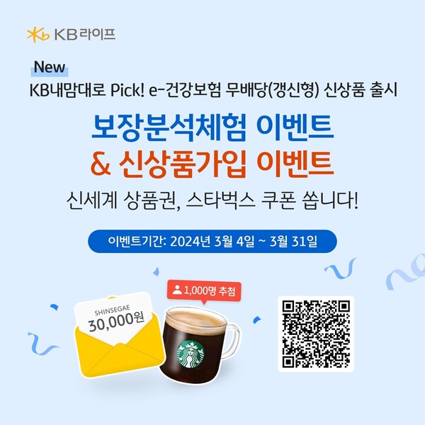 이벤트 기간 동안 KB내맘대로 Pick! e-건강보험 무배당(갱신형) 상품에 가입하는 고객은 최대 3만원 상당의 백화점 상품권을 받을 수 있다.