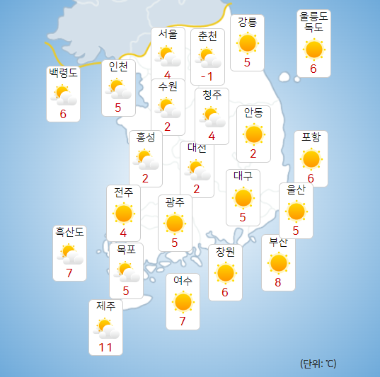 ▲ 부산 : [맑음, 구름많음] (8∼17) <0, 20>