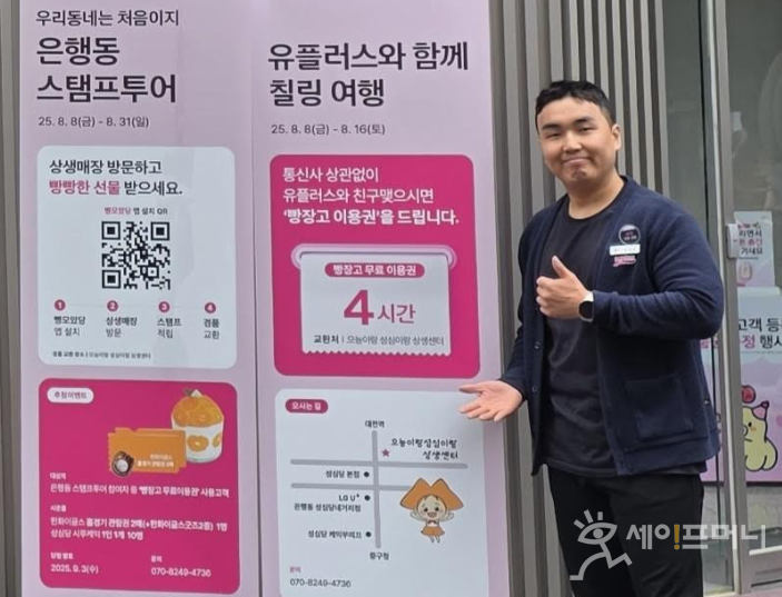오는 16일까지 대전 지역 LG유플러스 매장에서 친구 맺기를 한 고객은 지역에서 구매한 빵·케이크 등을 보관해주는 으능이랑 성심이랑 상생센터 4시간 무료 이용 쿠폰을 받을 수 있다.