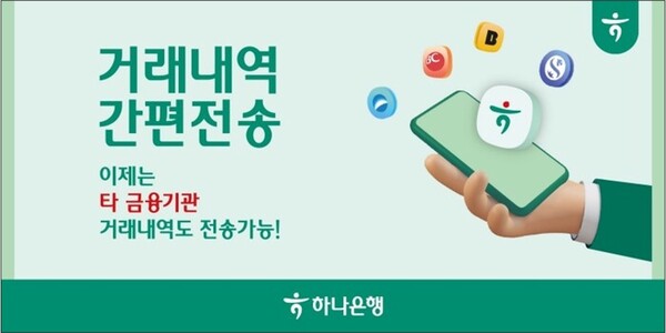 이에 하나은행은 거래내역 간편전송 서비스를 업그레이드해 △대상 금융기관 확대 △대상 거래내역 확대 △대상 고객 확대 등 세 가지 측면을 개선했다.