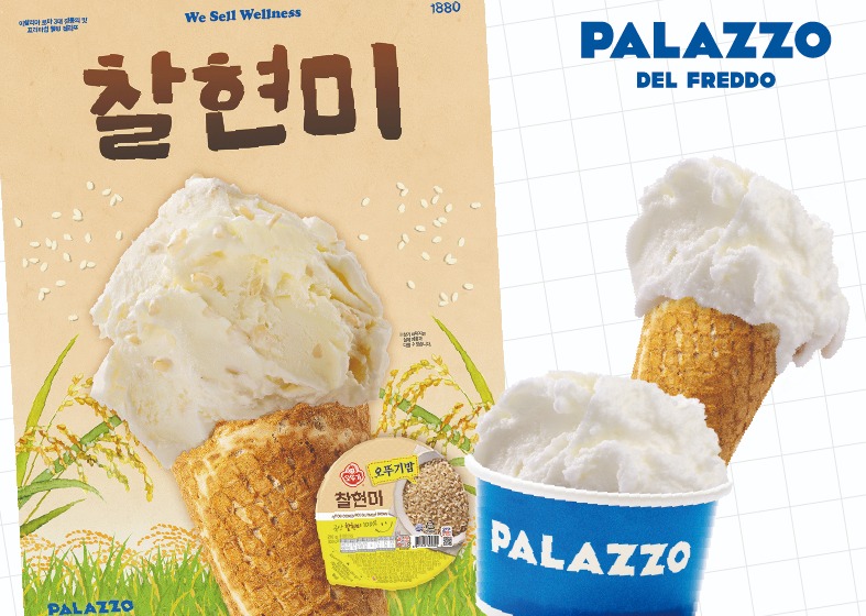 해태제과 프리미엄 젤라또 브랜드 빨라쪼가 오뚜기 찰현미 즉석밥으로 만든 '찰현미 젤라또'를 선보인다.