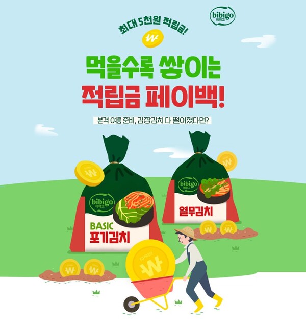 행사기간 김치를 구매한 고객에게 결제 금액의 일부를 CJ더마켓 적립금으로 되돌려주는 페이백 이벤트를 진행한다.