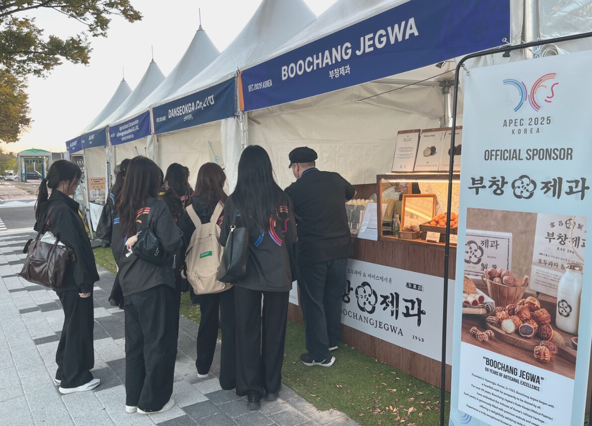 APEC 현장 부창제과 이벤트 부스는 28일부터 운영되고 있으며 오는 31일까지는 호두정과와 우유니소금크림맘모롤을, 다음달 1일에는 호두정과와 우유니소금크림호두단팥빵을 제공한다.