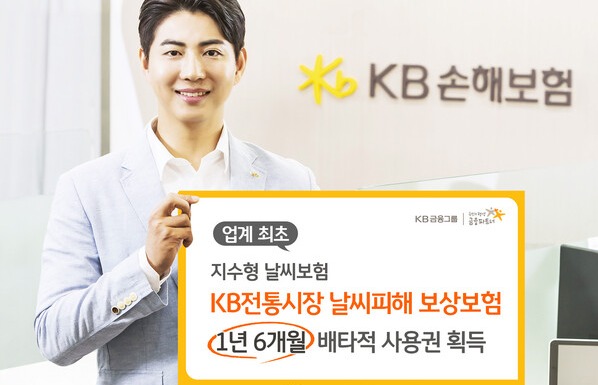 KB손해보험은 손해보험협회로부터 KB 전통시장 날씨피해 보상보험에 대해 1년 6개월간 배타적 사용권을 획득했다고 14일 밝혔다.