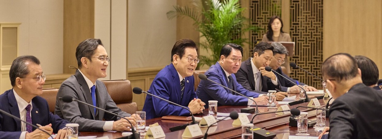16일 대통령실에 따르면 이재명 대통령과 이재용 삼성전자 회장을 비롯한 국내 주요 대기업 총수들은 서울 용산 대통령실에서 만나 한미 관세협상 후속 대책을 두고 의견을 나눴다.