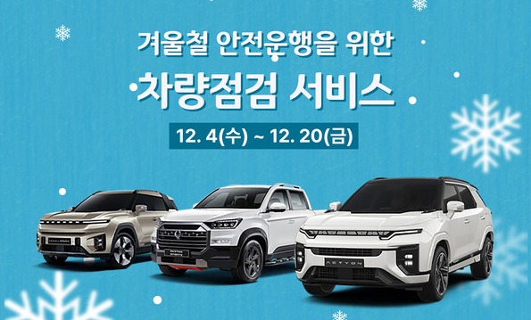 KGM 관계자는 "본격적인 추위가 시작되기 전 빙점을 확인하는 것이 좋다"며 "필수 항목을 점검받고 안전한 겨울나기를 준비하기 바란다"고 말했다.