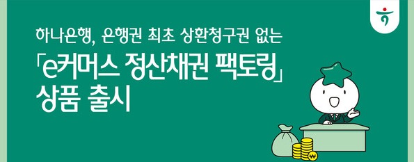 하나은행은 쿠팡, 쿠팡페이와 업무협약을 체결하고 은행권 최초로 상환청구권 없는 e커머스 정산채권 팩토링 상품을 출시했다고 6일 밝혔다.