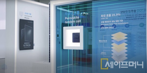 한화큐셀이 연구개발 중인 탠덤 셀은 서로 다른 영역 대의 빛을 흡수하는 실리콘 셀과 페로브스카이트 셀을 적층시켜 발전 효과를 극대화하는 차세대 태양전지다.