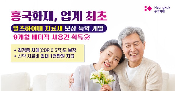 흥국화재는 알츠하이머 치료제 비용을 보장하는 특약을 개발해 손해보험협회 신상품심의위원회로부터 9개월 배타적 사용권을 획득했다고 19일 밝혔다.