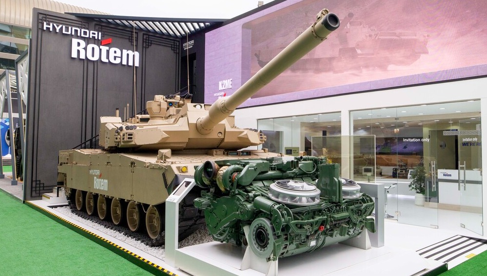 현대로템은 중동형 K2 전차와 국산 파워팩(엔진+변속기) 실물을 동시에 선보인다.