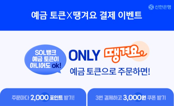 신한은행은 배달앱 땡겨요에서 예금토큰으로 주문하는 결제 시스템을 오픈했다고 9일 밝혔다.