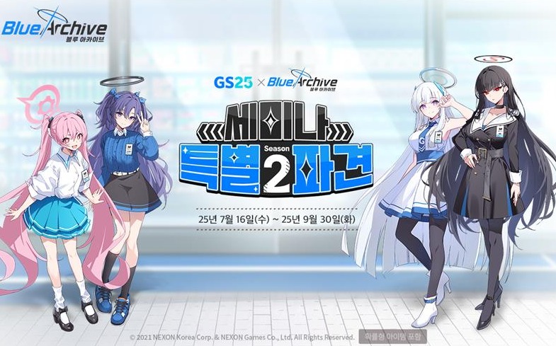 넥슨은 GS리테일과 제휴를 맺고 자사 서브컬처 게임 '블루 아카이브'로 제작한 컬래버레이션 상품을 GS25 편의점에 출시한다고 16일 밝혔다.